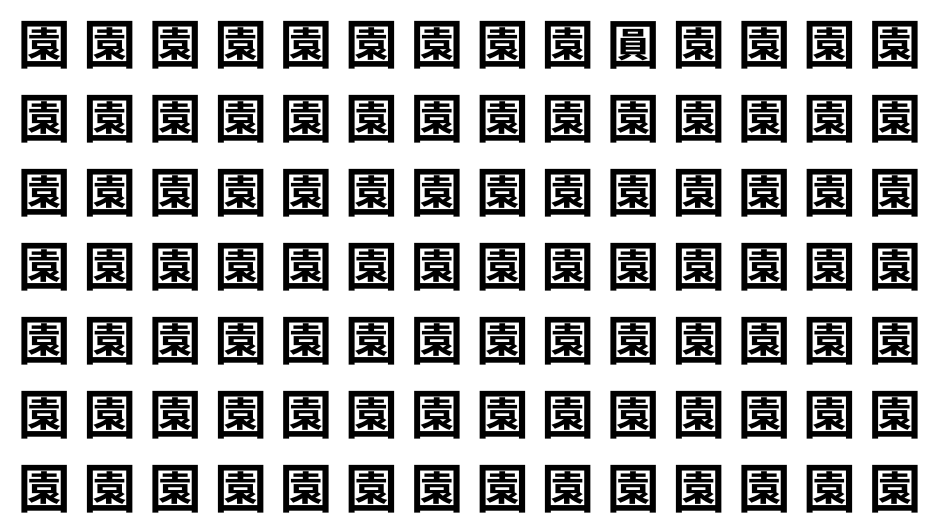 たくさんの「園」の中に、よく似た別の漢字が1文字だけ隠れています。