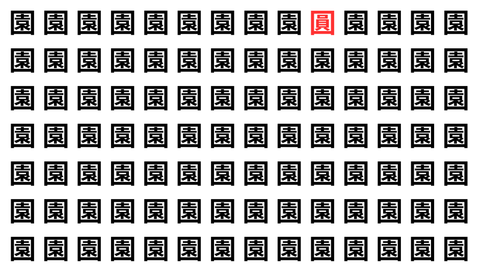 並んだ漢字の中に、ひとつだけ異なる文字が紛れています。集中して探し出し、気分をリフレッシュしましょう!