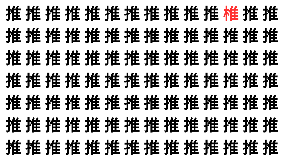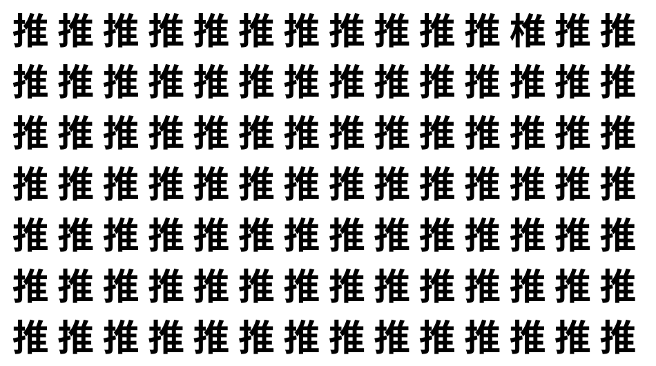 たくさんの「推」の中に、よく似た別の漢字が1文字だけ隠れています。