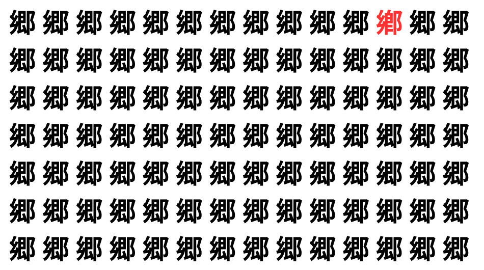 たくさんの「郷」の中に、よく似た別の漢字が1文字だけ隠れています。
