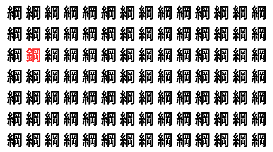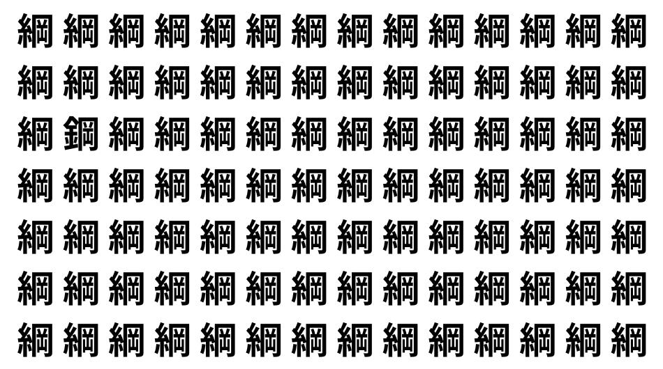 たくさんの「綱」の中に、よく似た別の漢字が1文字だけ隠れています。
