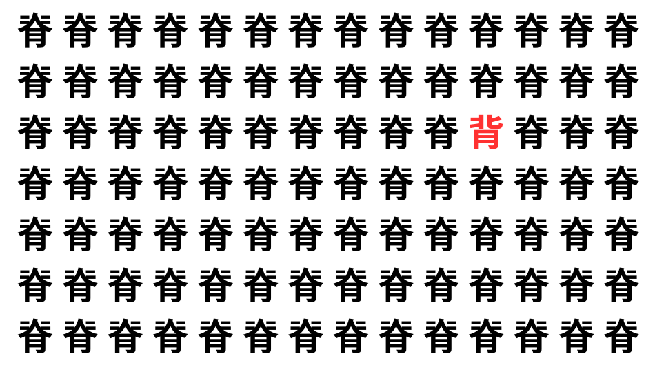 たくさんの「脊」の中に、よく似た別の漢字が1文字だけ隠れています。