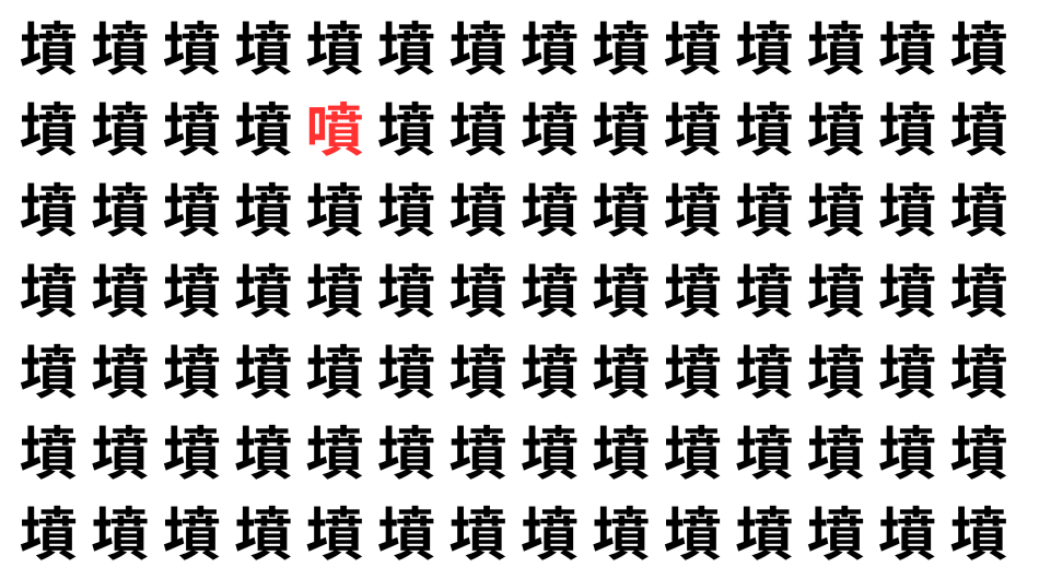 たくさんの「墳」の中に、よく似た別の漢字が1文字だけ隠れています。