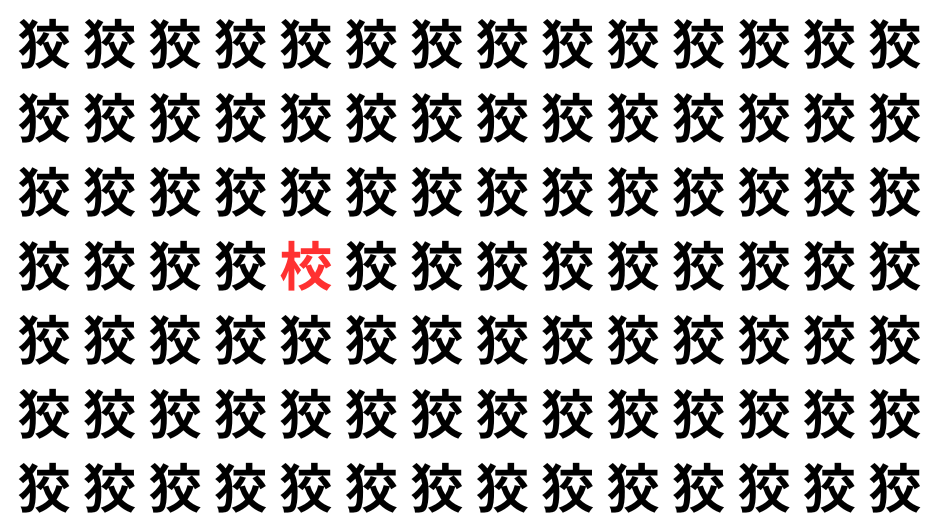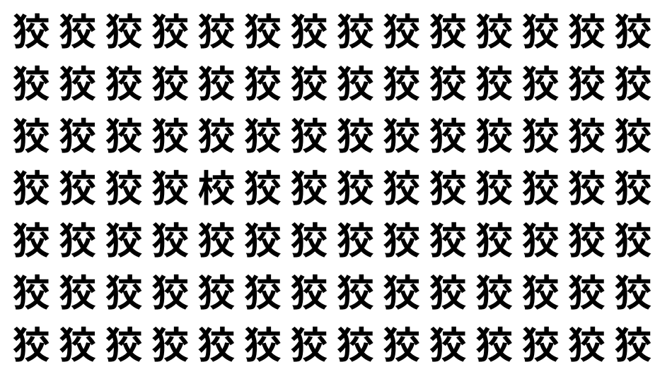 たくさんの「狡」の中に、よく似た別の漢字が1文字だけ隠れています。