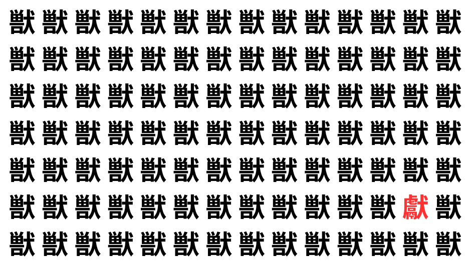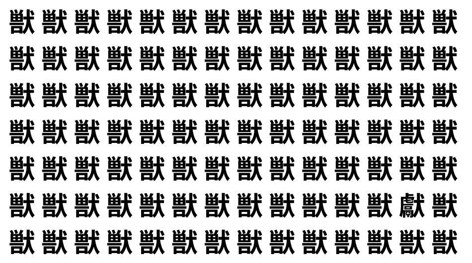 たくさんの「獣」の中に、よく似た別の漢字が1文字だけ隠れています。