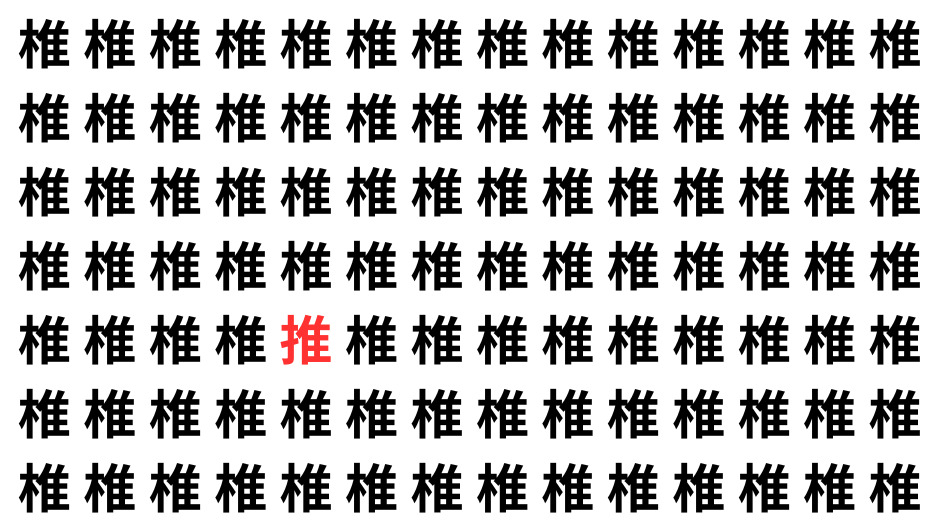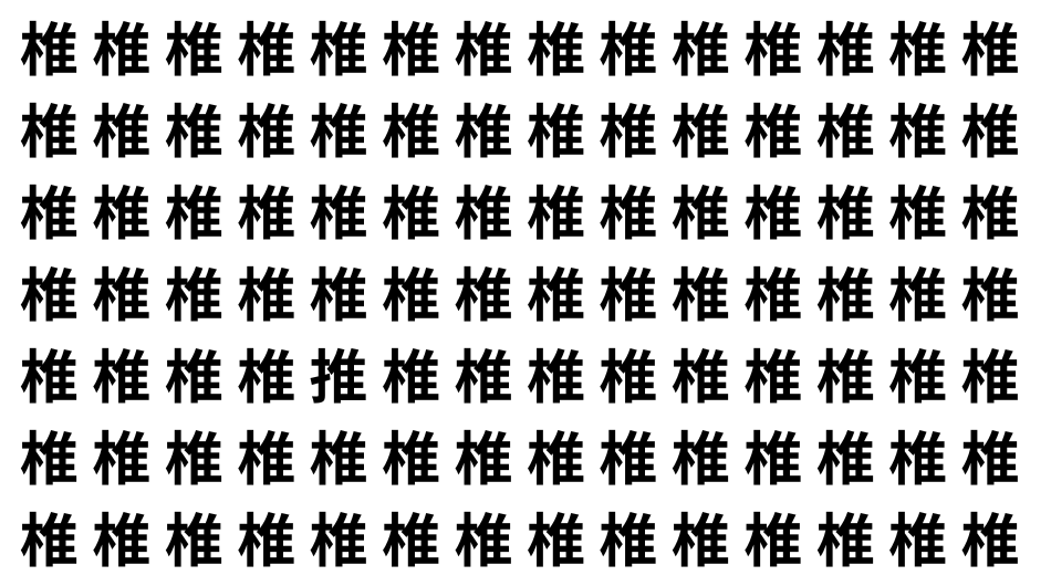 たくさんの「椎」の中に、よく似た別の漢字が1文字だけ隠れています。