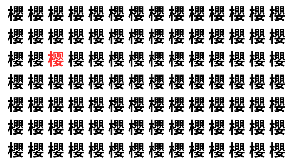 たくさんの「櫻」の中に、よく似た別の漢字が1文字だけ隠れています。