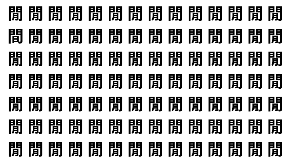たくさんの「閒」の中に、よく似た別の漢字が1文字だけ隠れています。