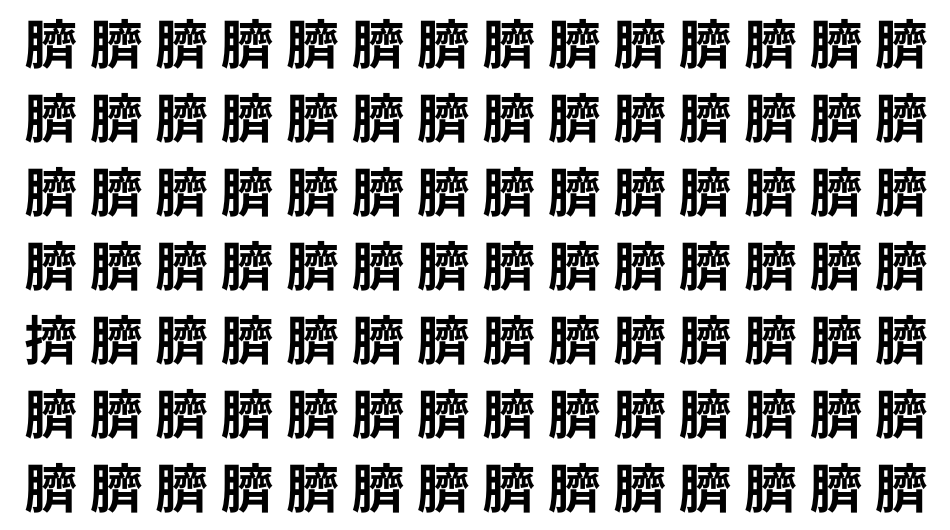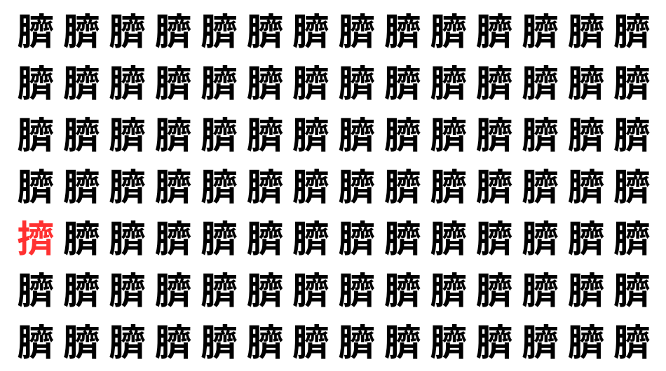 たくさんの「臍」の中に、よく似た別の漢字が1文字だけ隠れています。