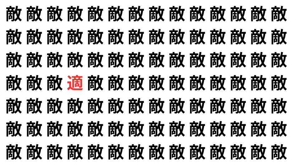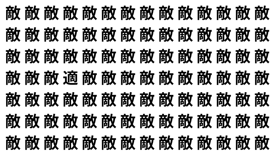 たくさんの「敵」の中に、よく似た別の漢字が1文字だけ隠れています。