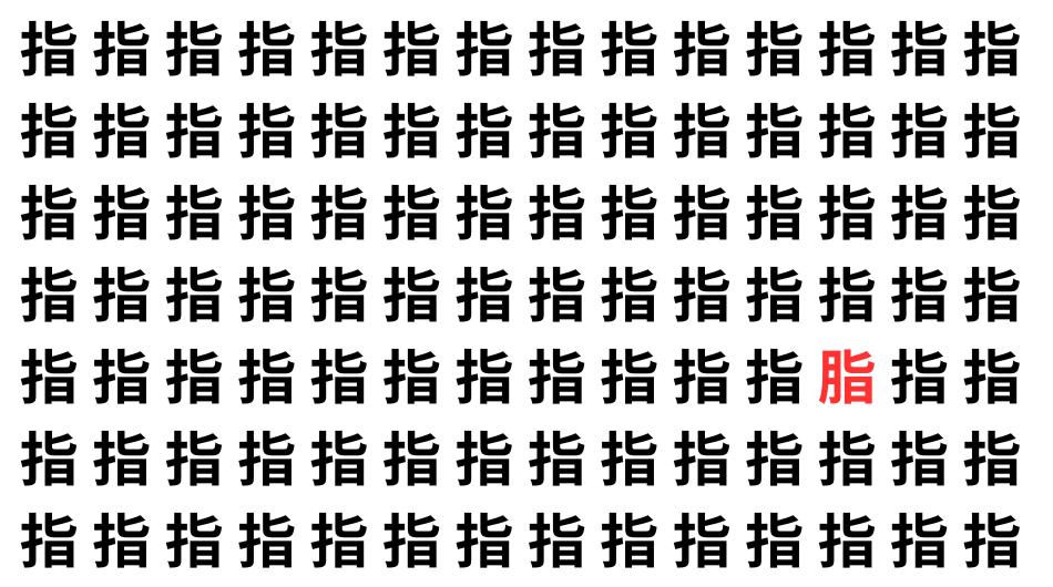 たくさんの「指」の中に、よく似た別の漢字が1文字だけ隠れています。