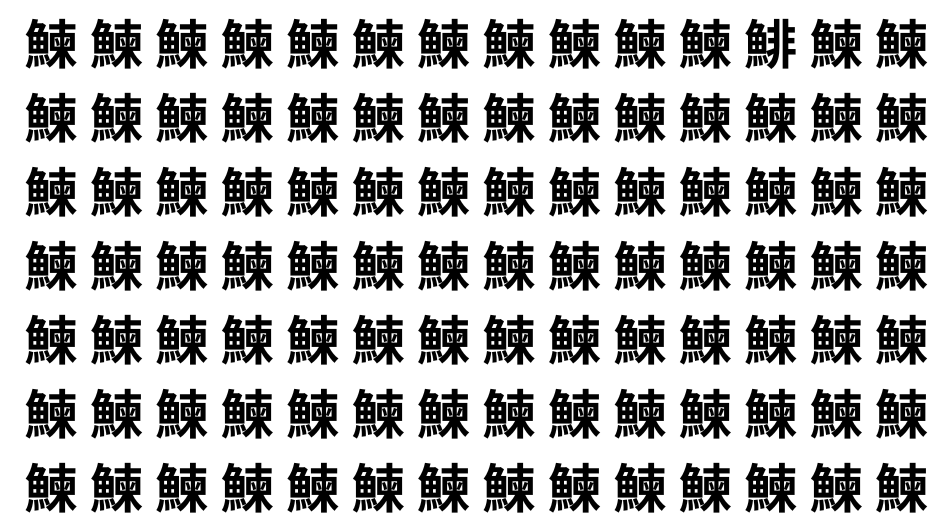 たくさんの「鰊」の中に、よく似た別の漢字が1文字だけ隠れています。