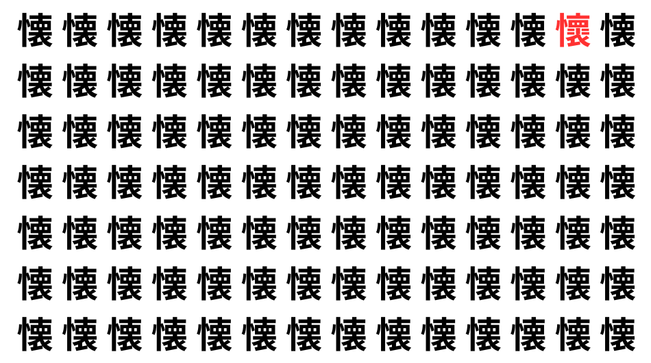 たくさんの「懐」の中に、よく似た別の漢字が1文字だけ隠れています。