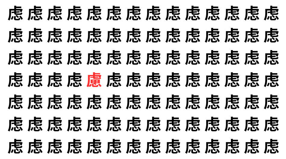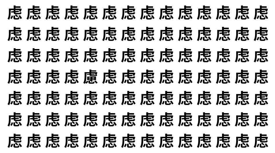 たくさんの「虑」の中に、よく似た別の漢字が1文字だけ隠れています。