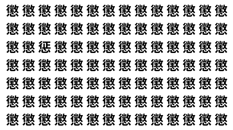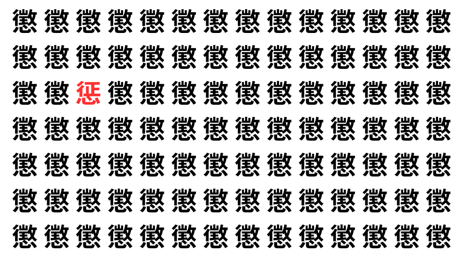 たくさんの「懲」の中に、よく似た別の漢字が1文字だけ隠れています。