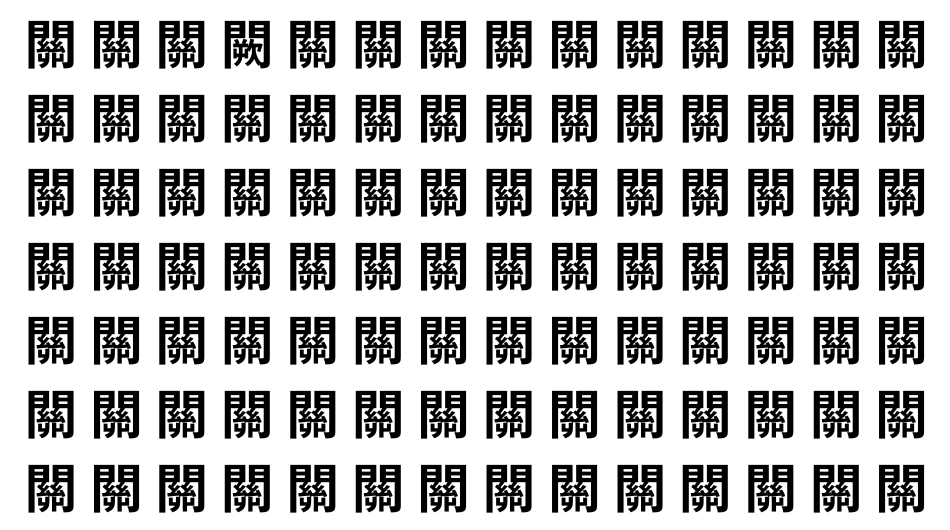 たくさんの「關」の中に、よく似た別の漢字が1文字だけ隠れています。