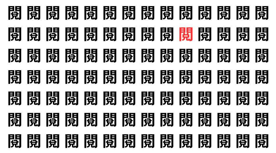 たくさんの「閱」の中に、よく似た別の漢字が1文字だけ隠れています。