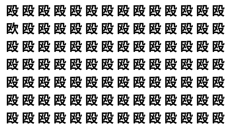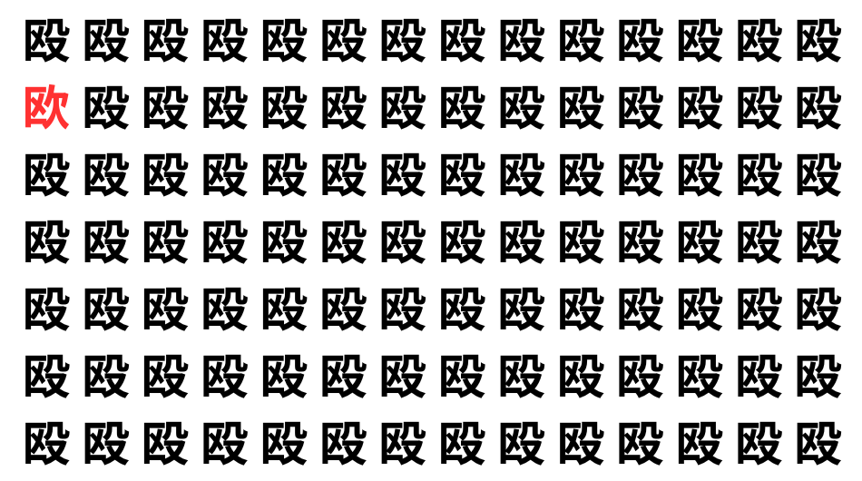 たくさんの「殴」の中に、よく似た別の漢字が1文字だけ隠れています。