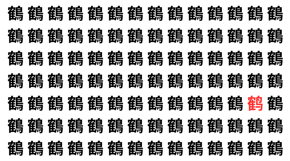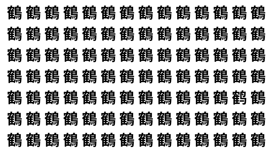たくさんの「鶴」の中に、よく似た別の漢字が1文字だけ隠れています。
