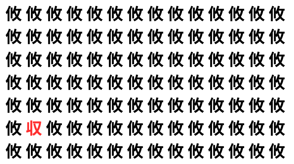 並んだ漢字の中に、ひとつだけ異なる文字が紛れています。集中して探し出し、気分をリフレッシュしましょう!