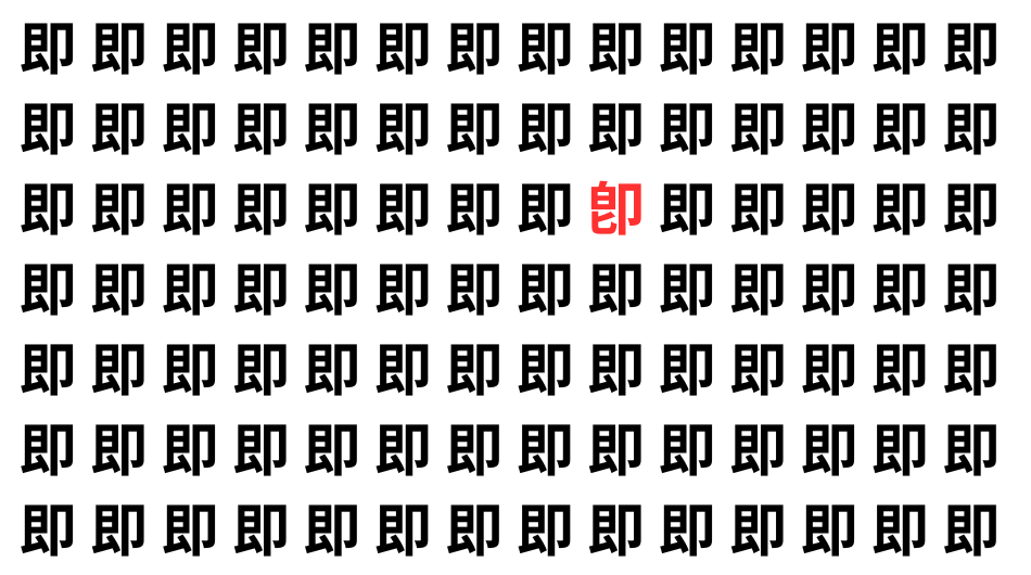 たくさんの「即」の中に、よく似た別の漢字が1文字だけ隠れています。
