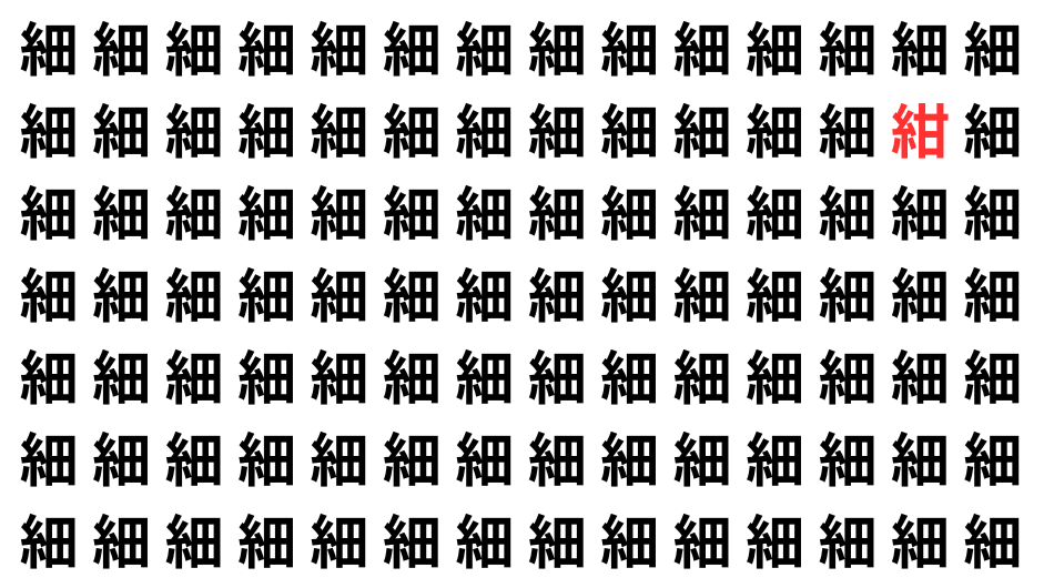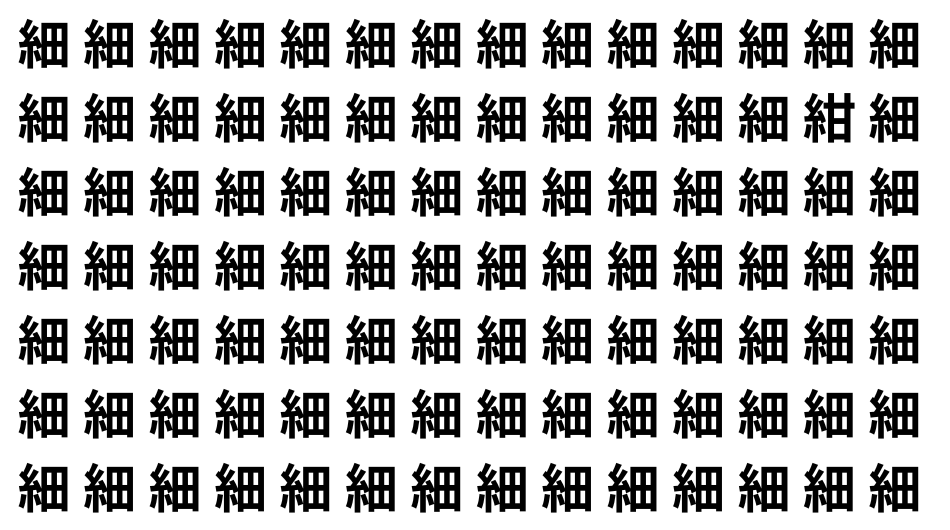 たくさんの「細」の中に、よく似た別の漢字が1文字だけ隠れています。