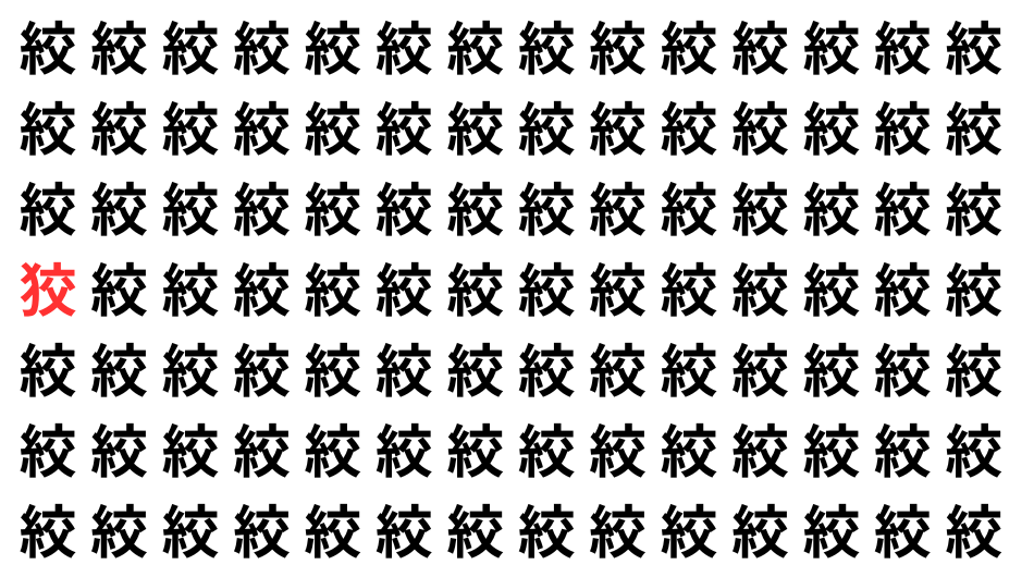 並んだ漢字の中に、ひとつだけ異なる文字が紛れています。集中して探し出し、気分をリフレッシュしましょう!