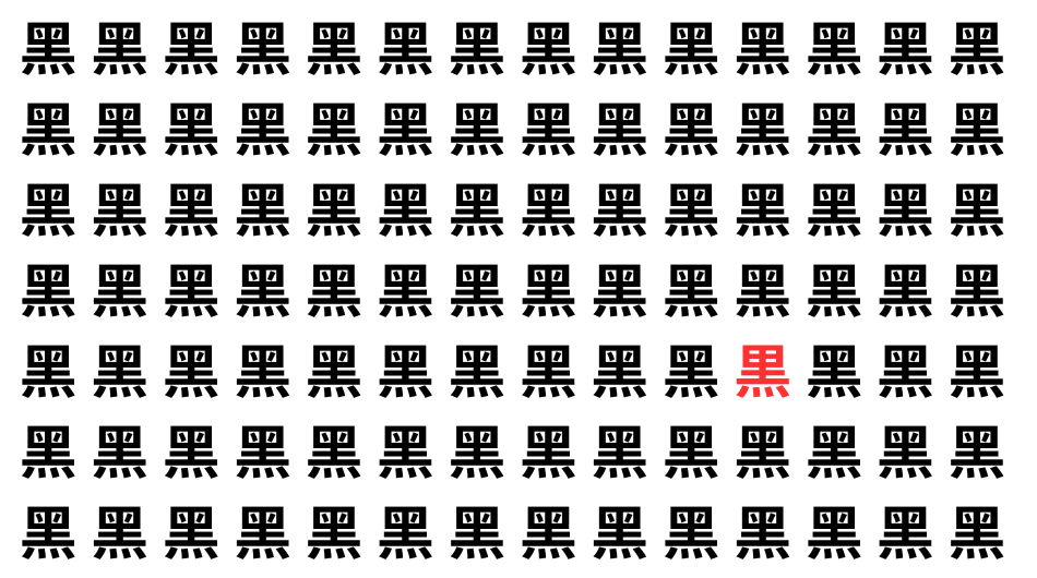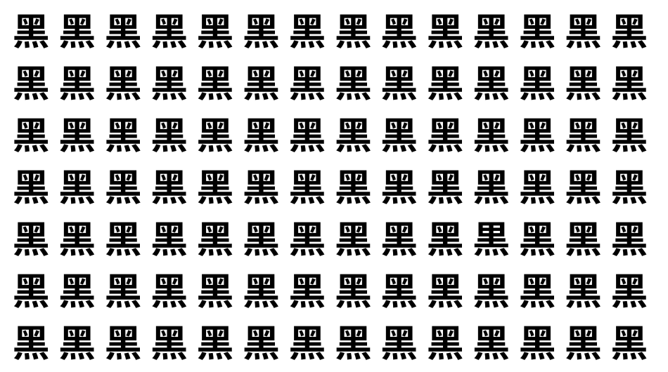 たくさんの「黑」の中に、よく似た別の漢字が1文字だけ隠れています。