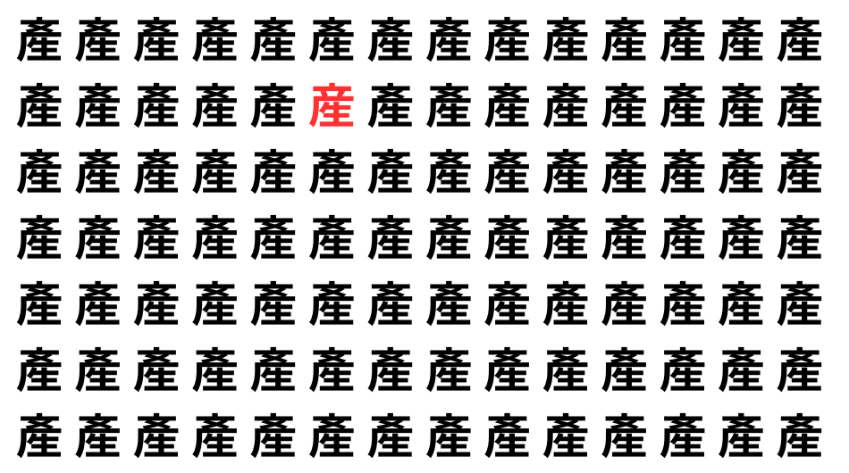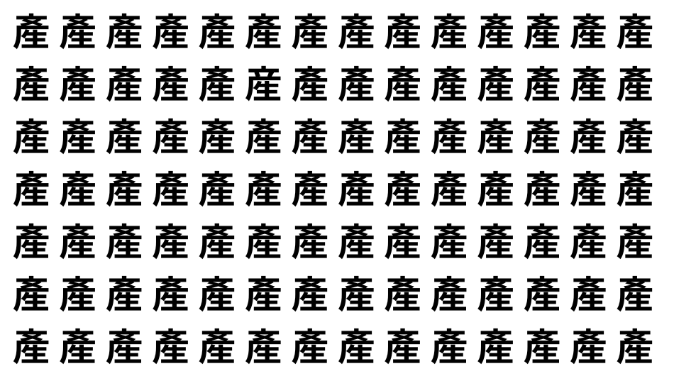 たくさんの「產」の中に、よく似た別の漢字が1文字だけ隠れています。