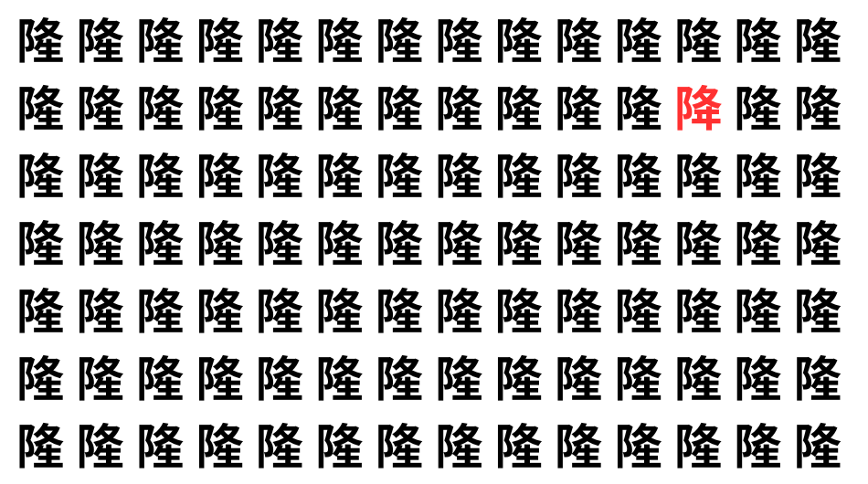たくさんの「隆」の中に、よく似た別の漢字が1文字だけ隠れています。