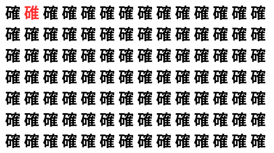 たくさんの「確」の中に、よく似た別の漢字が1文字だけ隠れています。