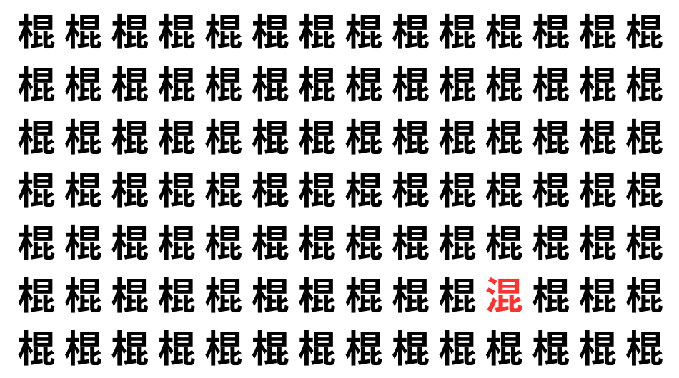 たくさんの「棍」の中に、よく似た別の漢字が1文字だけ隠れています。