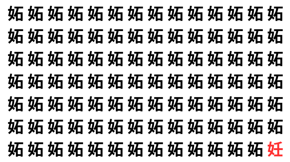 妬の中にあるのは何!?【漢字間違い探し】何秒で見つかる?