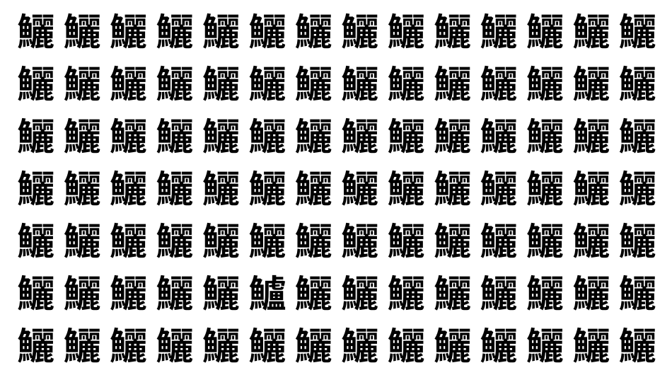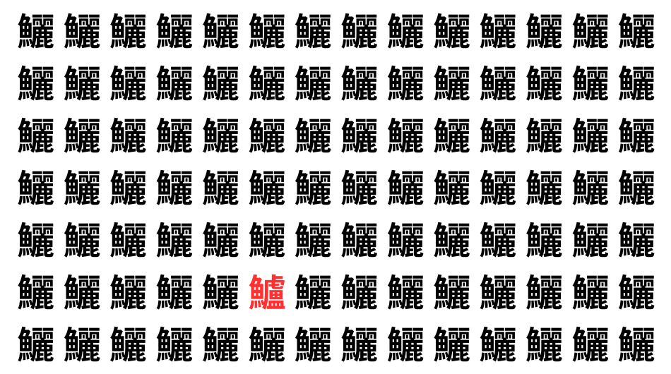たくさんの「鱺」の中に、よく似た別の漢字が1文字だけ隠れています。