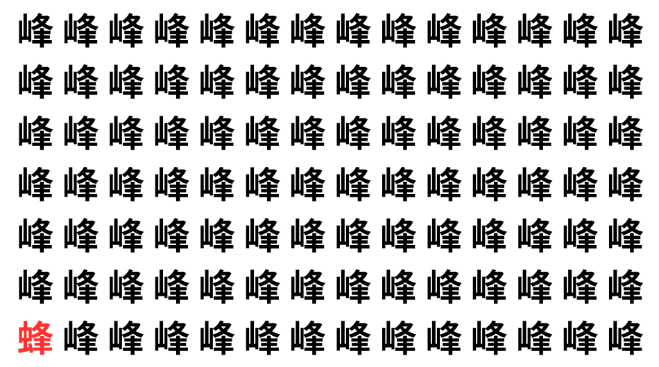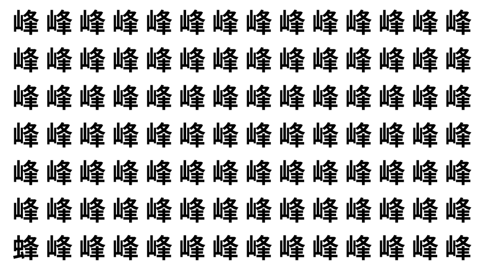 たくさんの「峰」の中に、よく似た別の漢字が1文字だけ隠れています。
