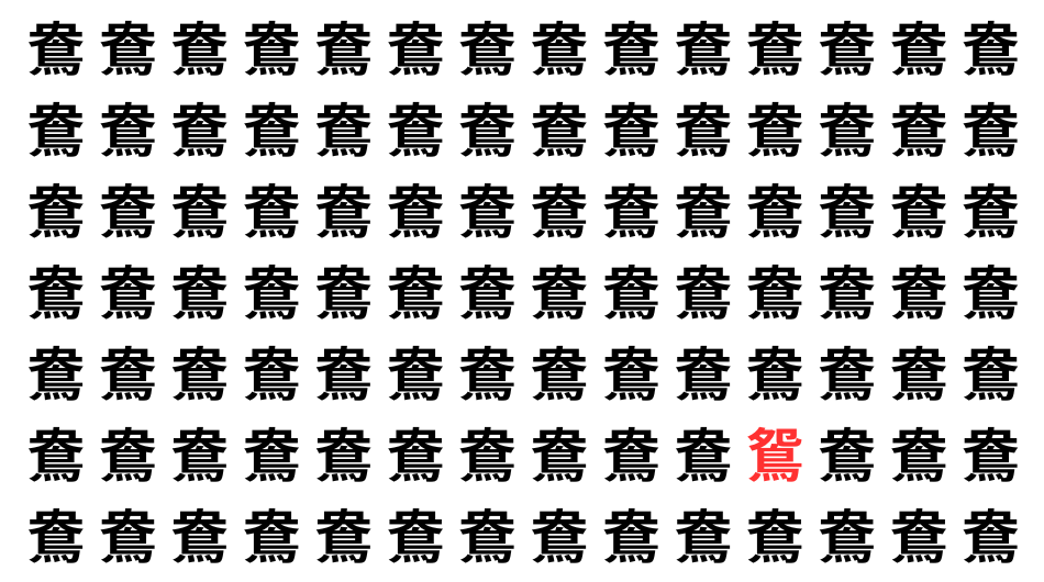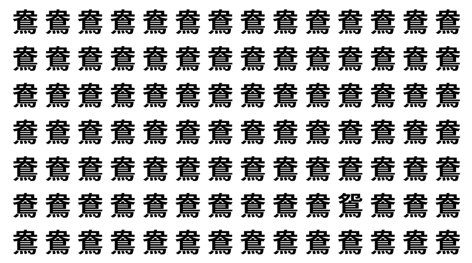 たくさんの「鴦」の中に、よく似た別の漢字が1文字だけ隠れています。