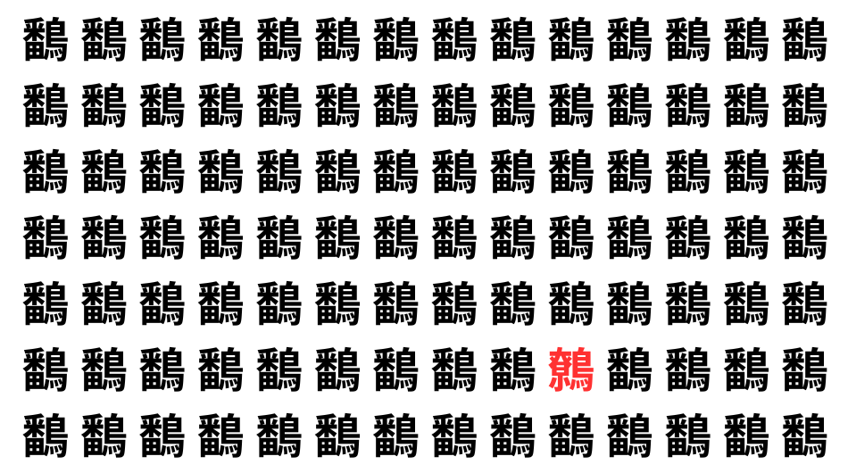 たくさんの「鷭」の中に、よく似た別の漢字が1文字だけ隠れています。