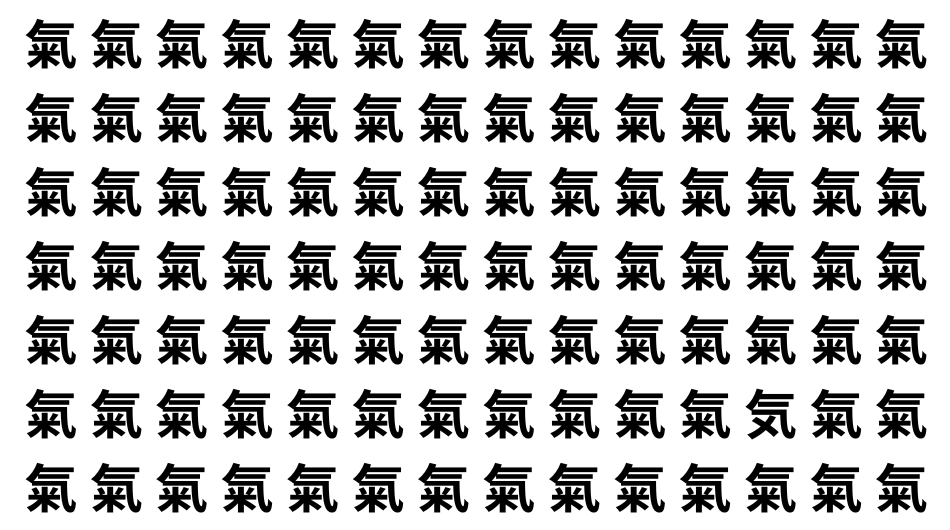 たくさんの「氣」の中に、よく似た別の漢字が1文字だけ隠れています。