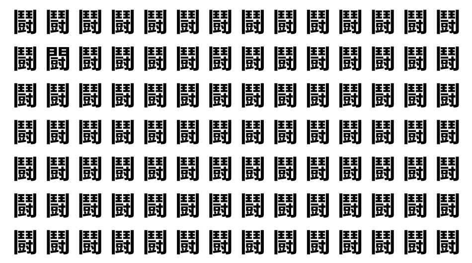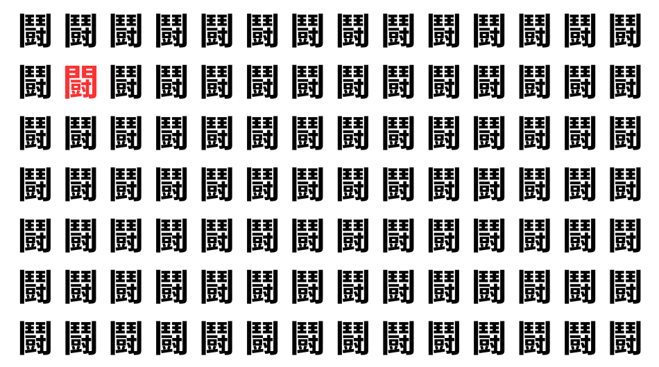 たくさんの「鬪」の中に、よく似た別の漢字が1文字だけ隠れています。