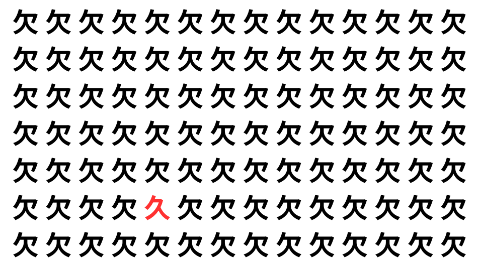 たくさんの「欠」の中に、よく似た別の漢字が1文字だけ隠れています。