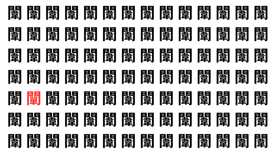 たくさんの「闈」の中に、よく似た別の漢字が1文字だけ隠れています。