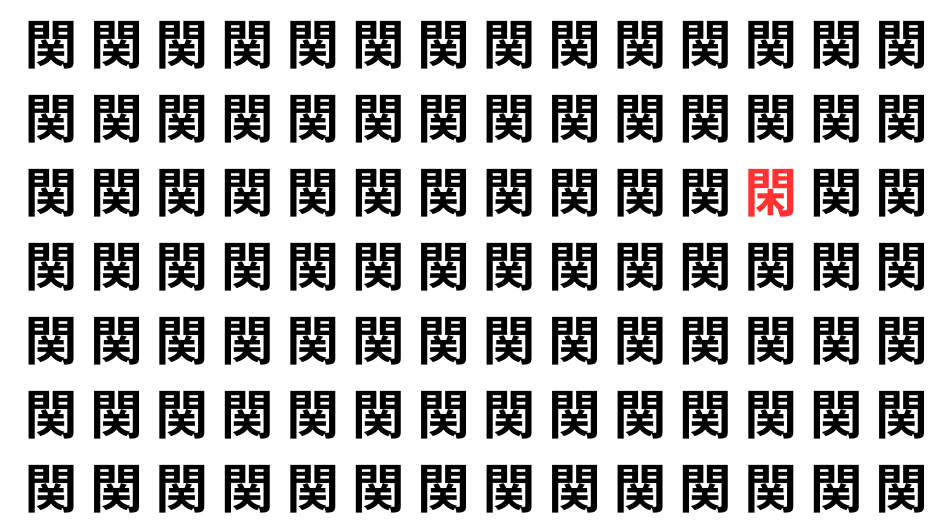 たくさんの「関」の中に、よく似た別の漢字が1文字だけ隠れています。