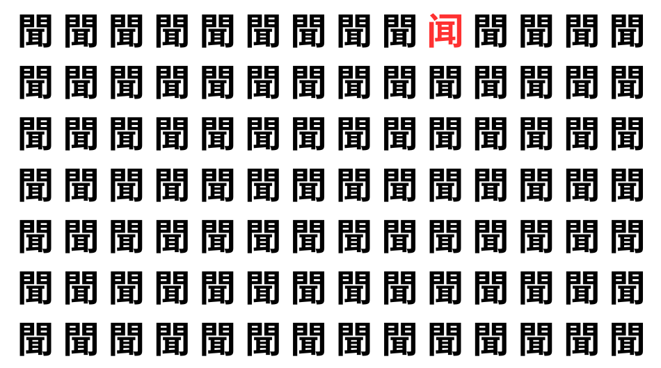 たくさんの「聞」の中に、よく似た別の漢字が1文字だけ隠れています。
