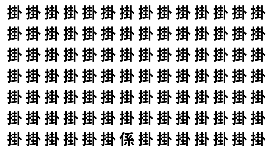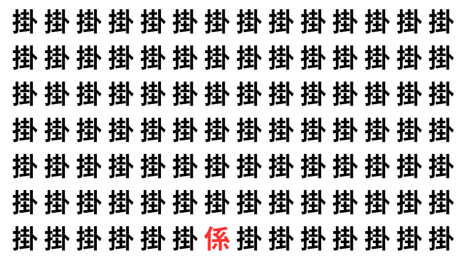 たくさんの「掛」の中に、よく似た別の漢字が1文字だけ隠れています。