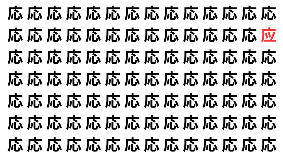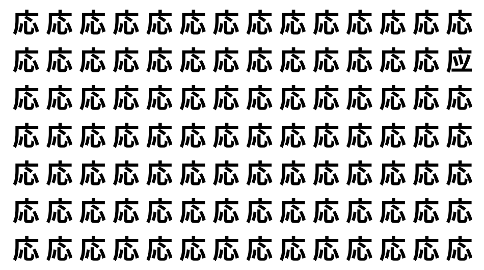 たくさんの「応」の中に、よく似た別の漢字が1文字だけ隠れています。