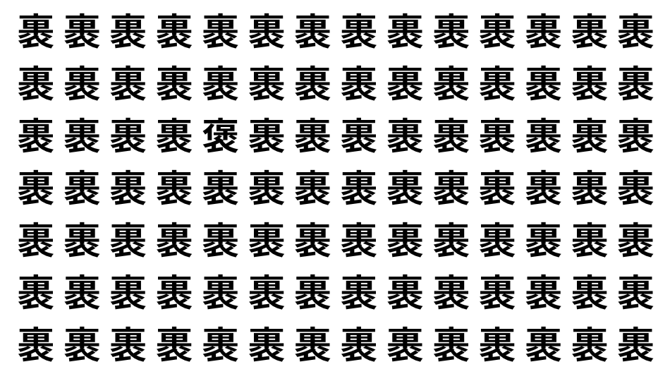 たくさんの「裹」の中に、よく似た別の漢字が1文字だけ隠れています。