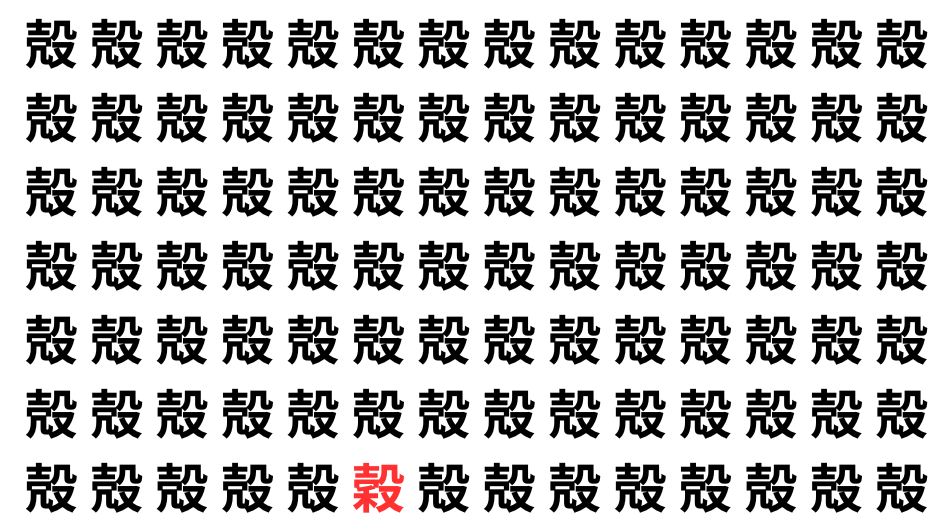 並んだ漢字の中に、ひとつだけ異なる文字が紛れています。集中して探し出し、気分をリフレッシュしましょう!