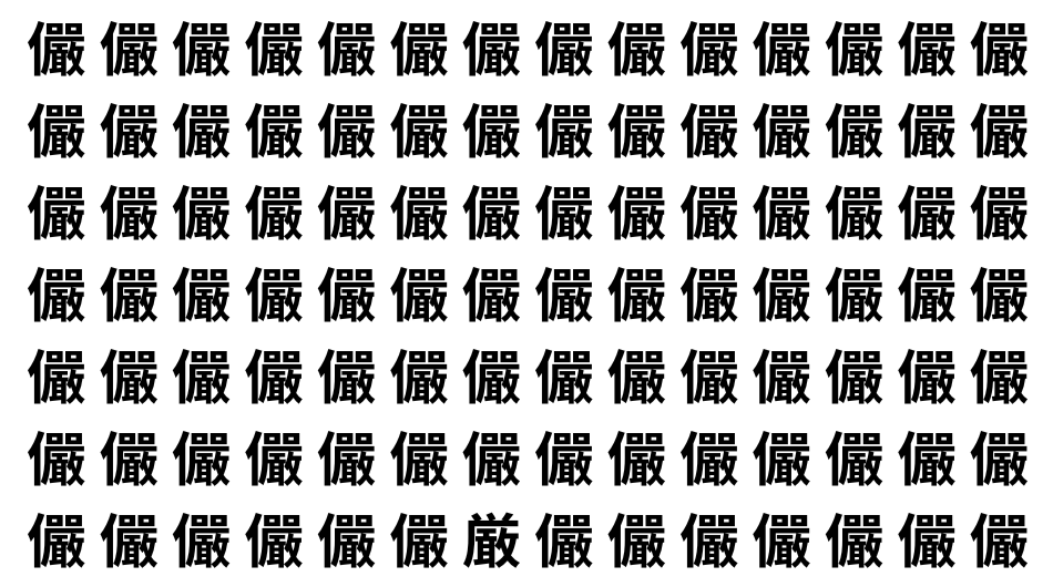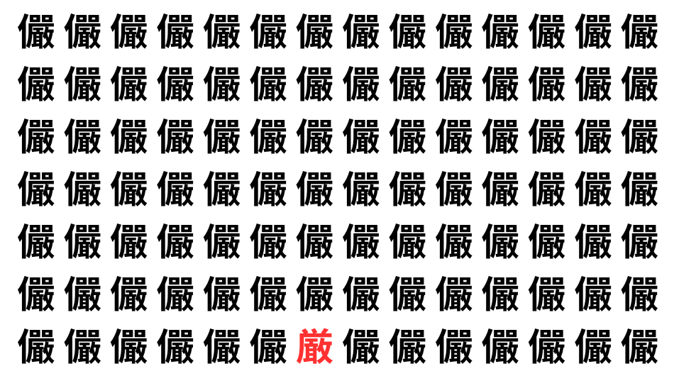 たくさんの「儼」の中に、よく似た別の漢字が1文字だけ隠れています。