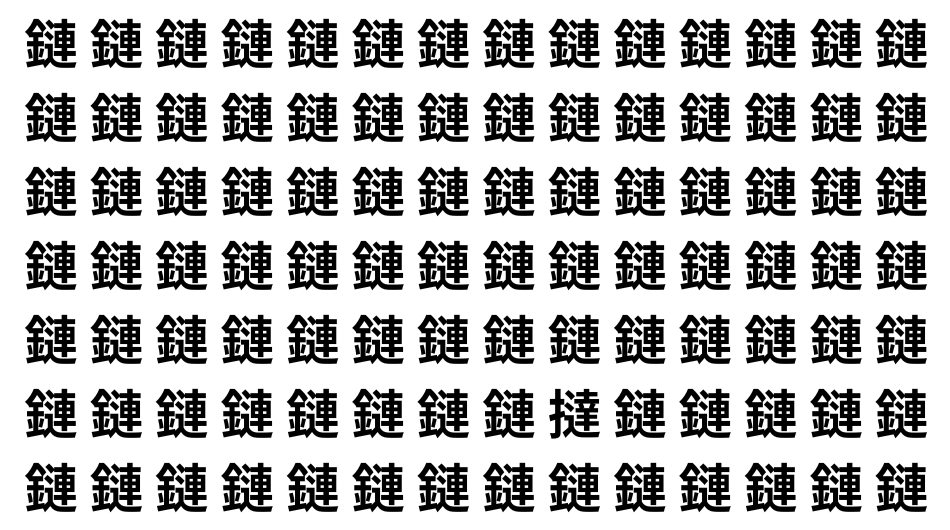 たくさんの「鏈」の中に、よく似た別の漢字が1文字だけ隠れています。