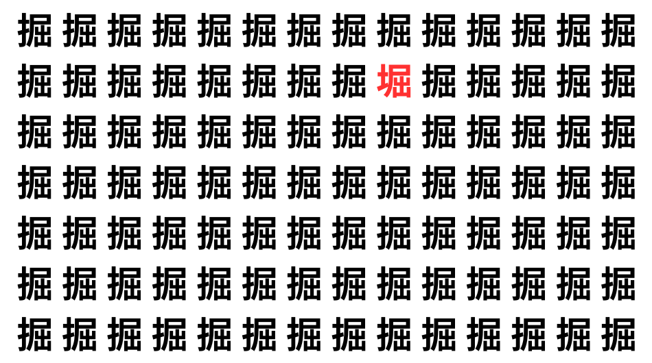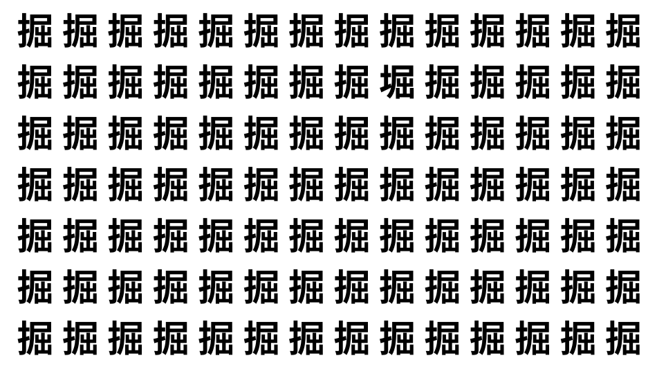 たくさんの「掘」の中に、よく似た別の漢字が1文字だけ隠れています。